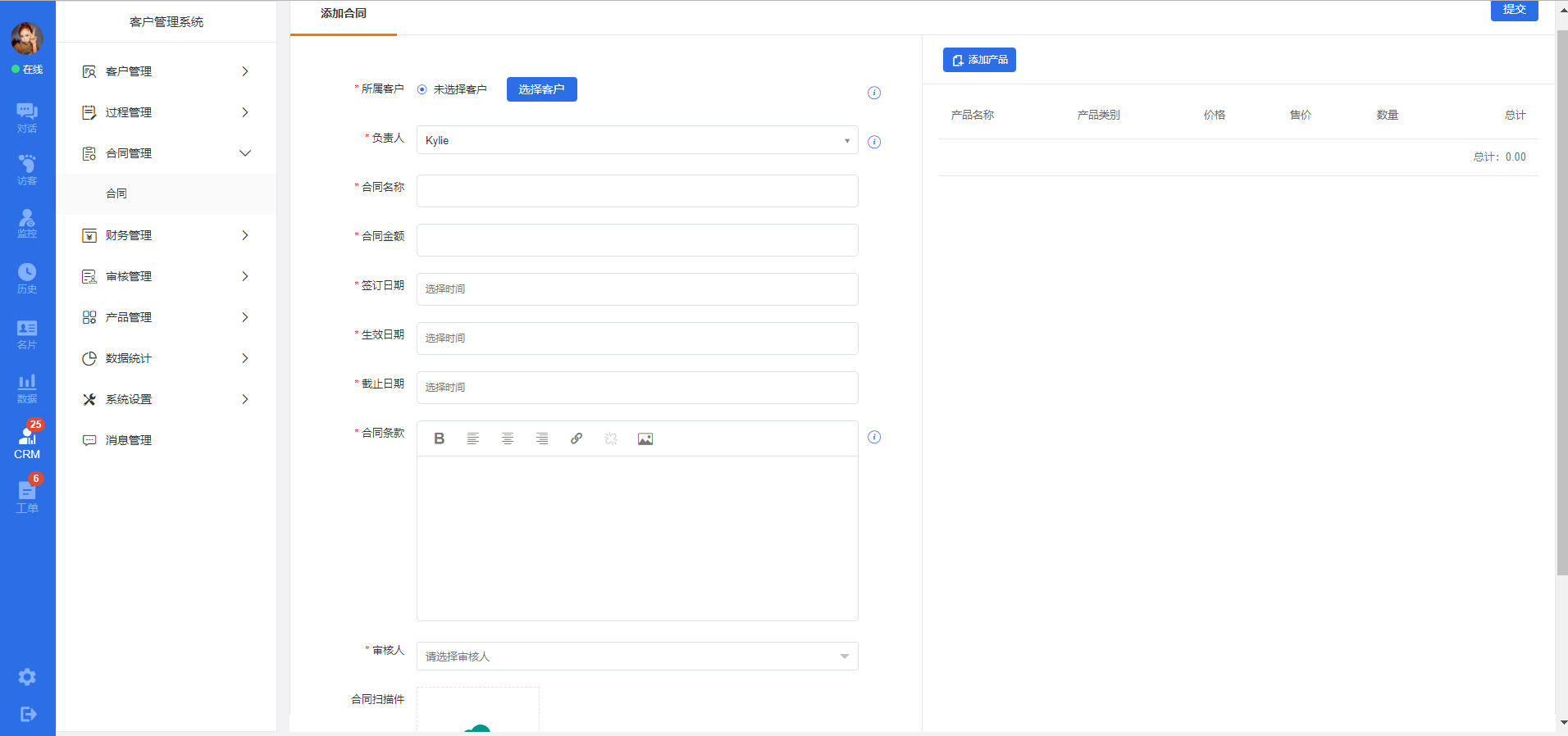 我们将客服CRM的客户信息存储、跟进、通知、等几个方面做了阐述,那么我们做了这么多工作,目的是为了成交,以及成交后的维护和二次开发,所以,还有一个环节是必不可少的,正式客户的合同、产品内容,也要做一一对应的关系,这样我们才利于我们对核心客户的维护与开发。
